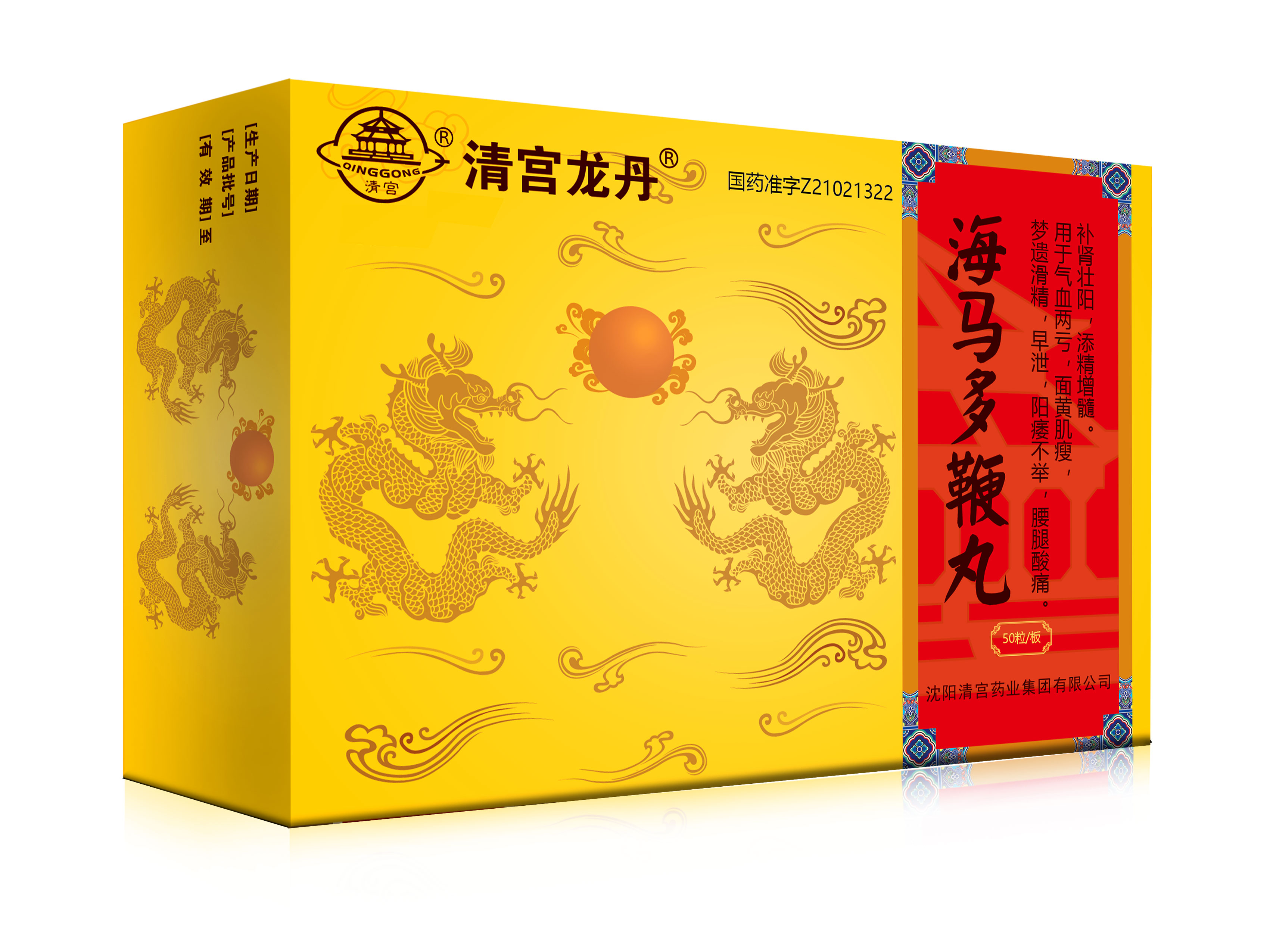 • 清宫龙丹(海马多鞭丸)300粒装补肾壮阳,添精增髓。用于气血两亏,面黄肌瘦,梦遗滑精,早泄,阳痿不举,腰腿酸痛。本品为黑色的水丸,味甘、咸。
